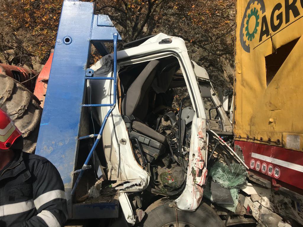 Accidentul dintre cele două TIR-uri s-a soldat cu decesul unei persoane de 67 de ani. Este vorba despre pasagerul din dreapta, care a fost încarcerat. La extragerea victimei, salvatorii au declarat moartea acesteia. Și unul dintre șoferi, de 32 de ani, a fost rănit, dar a fost preluat de ambulanță conștient.