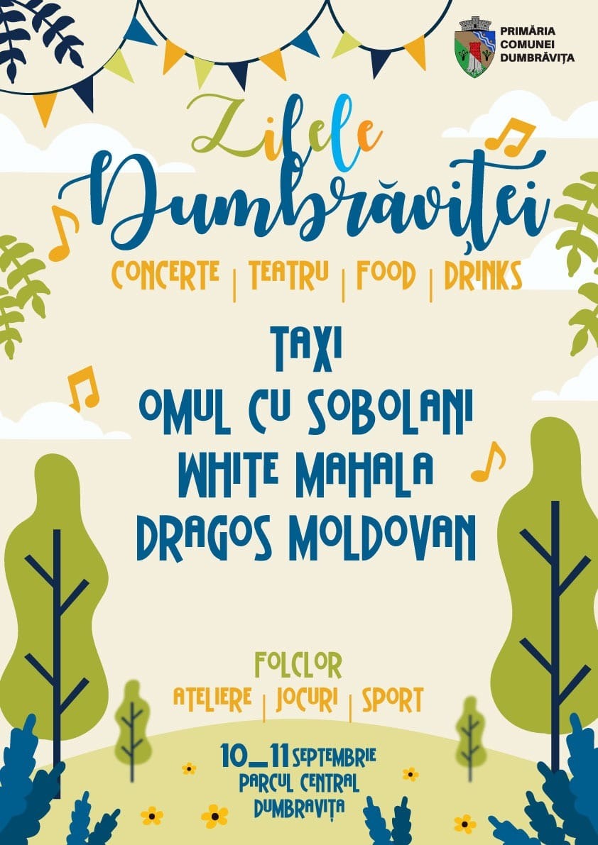 În zilele de 10 și 11 septembrie, publicul de pretutindeni este așteptat la Zilele Dumbrăviței, cu invitați de seamă, mâncare bună și poftă de distracție. Evenimentul este organizat de Primăria Dumbrăvița, Consiliul Local și Dumbrăvița TV.