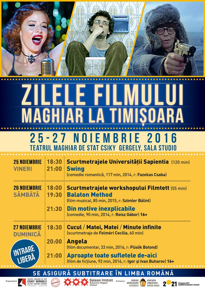 Teatrul Maghiar de Stat Csiky Gergely găzduieşte în 25-27 noiembrie a III-a ediţie a Zilelor Filmului Maghiar. Festivalul este organizat în parteneriat cu Asociația Comunitară pentru Banat și Institutul Balassi din București. Proiecţiile vor fi în Sala Studio a teatrului, care are 60 de locuri. Programul festivalului este următorul: