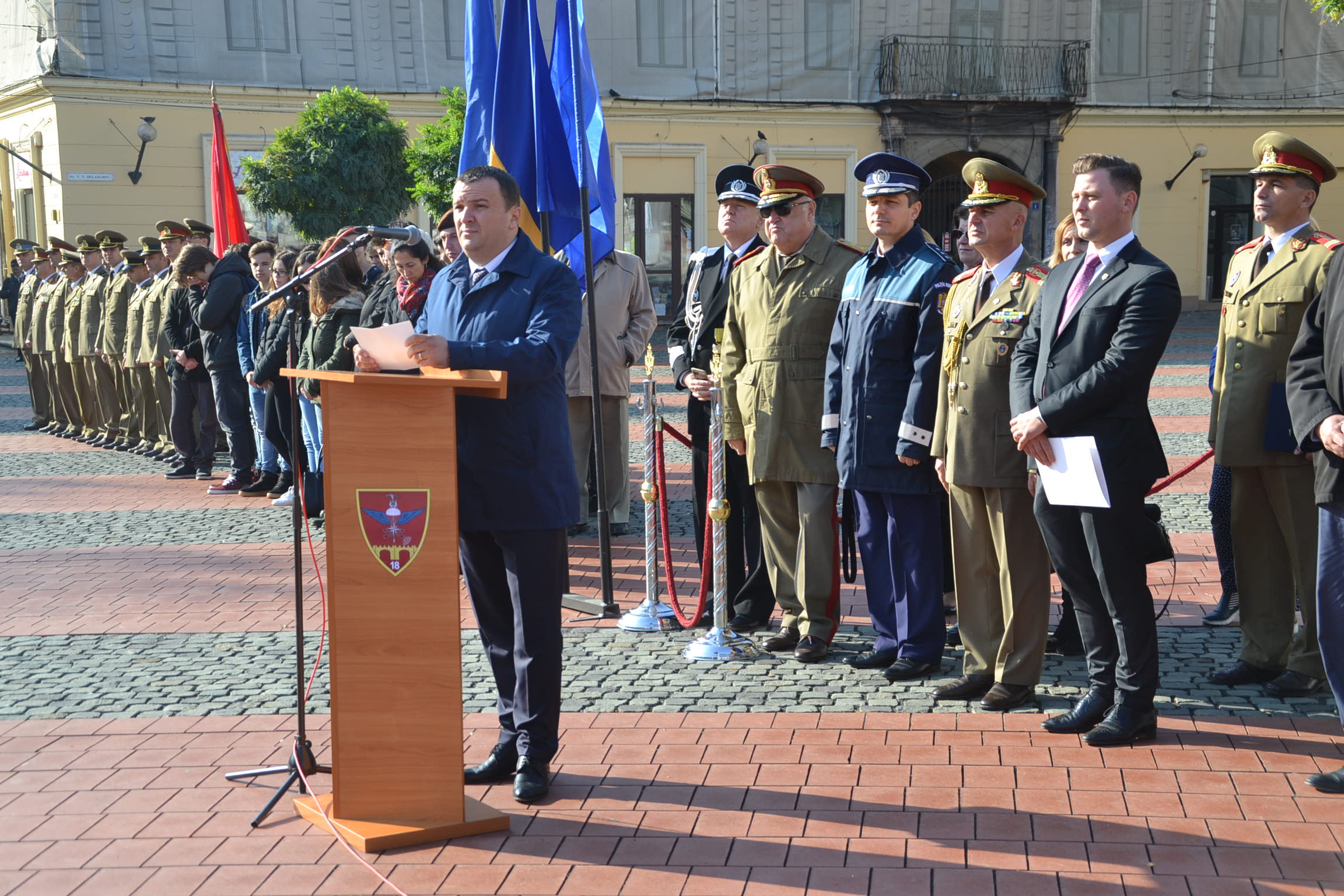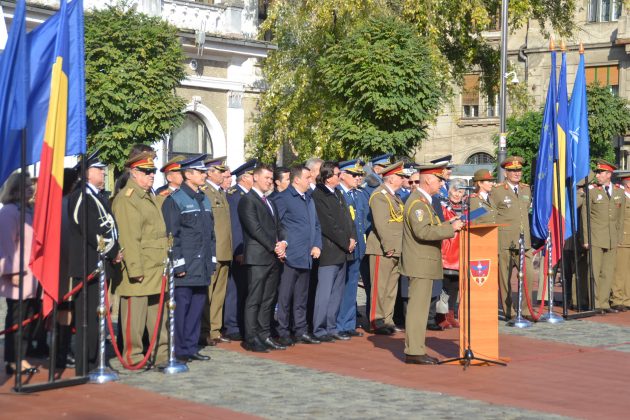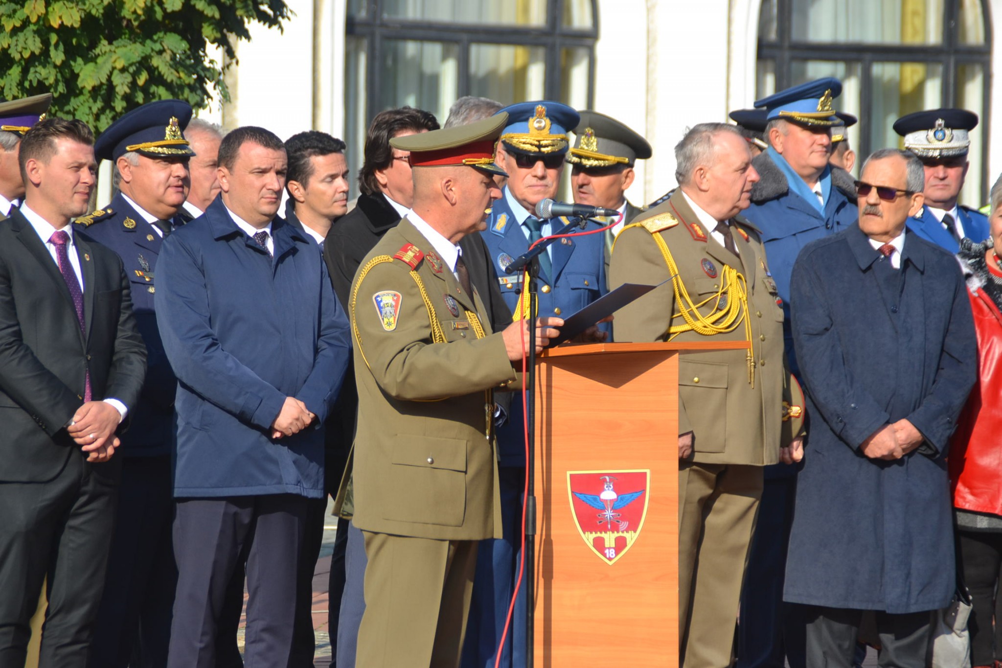Colonelul Dan Ionescu, comandantul Brigazii a dat citire unui mesaj al ministrului Apărării ce a felicitat toți militarii și a scos în evidență schimbările deosebite ce au început să aibă loc în privința dotării celor ce apără țara. Rând pe rând s-au perindat la microfon autoritățile administrative de la nivel de județ și municipiu pentru a scoate în evidență tradițiile de arme ale oștirii române.