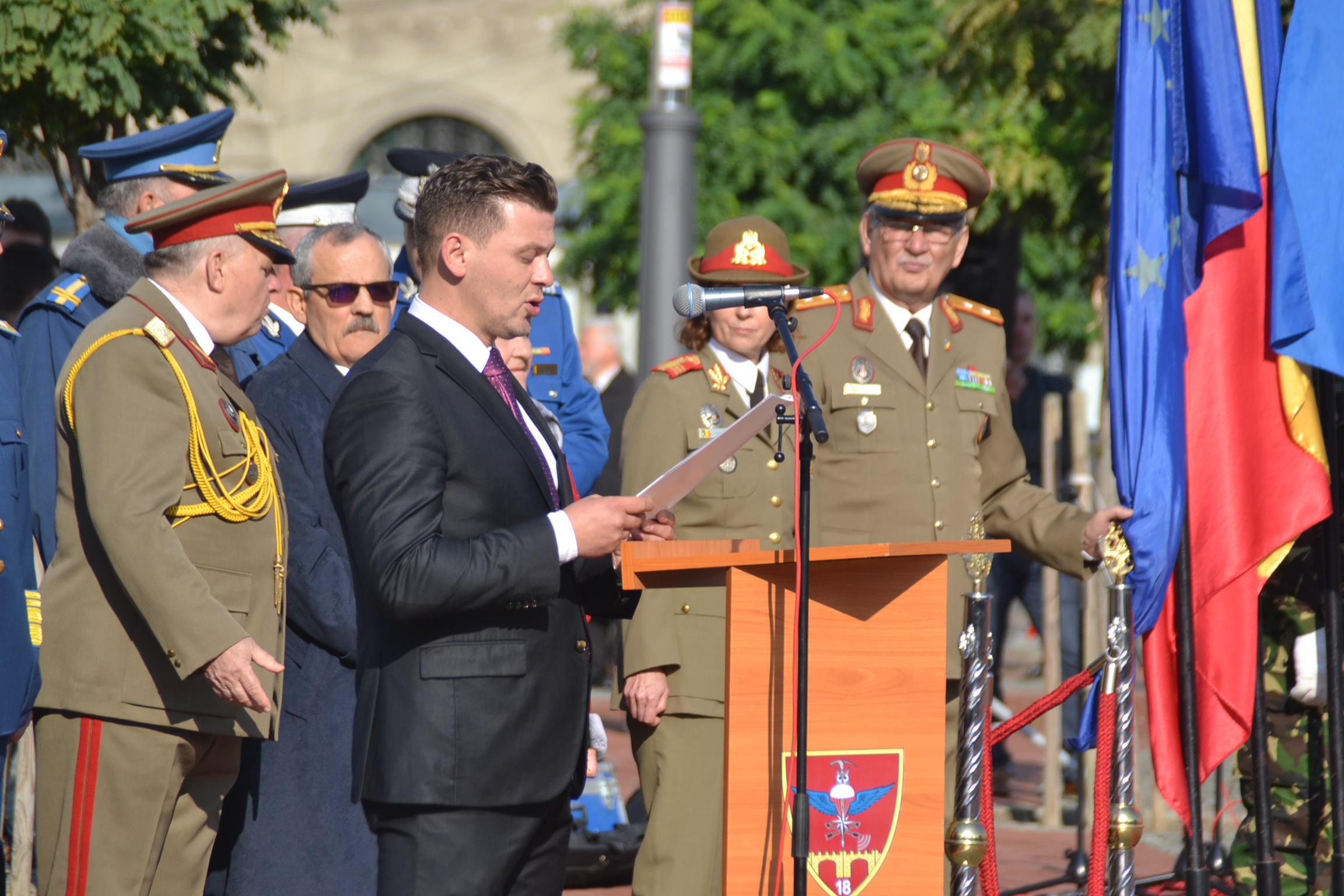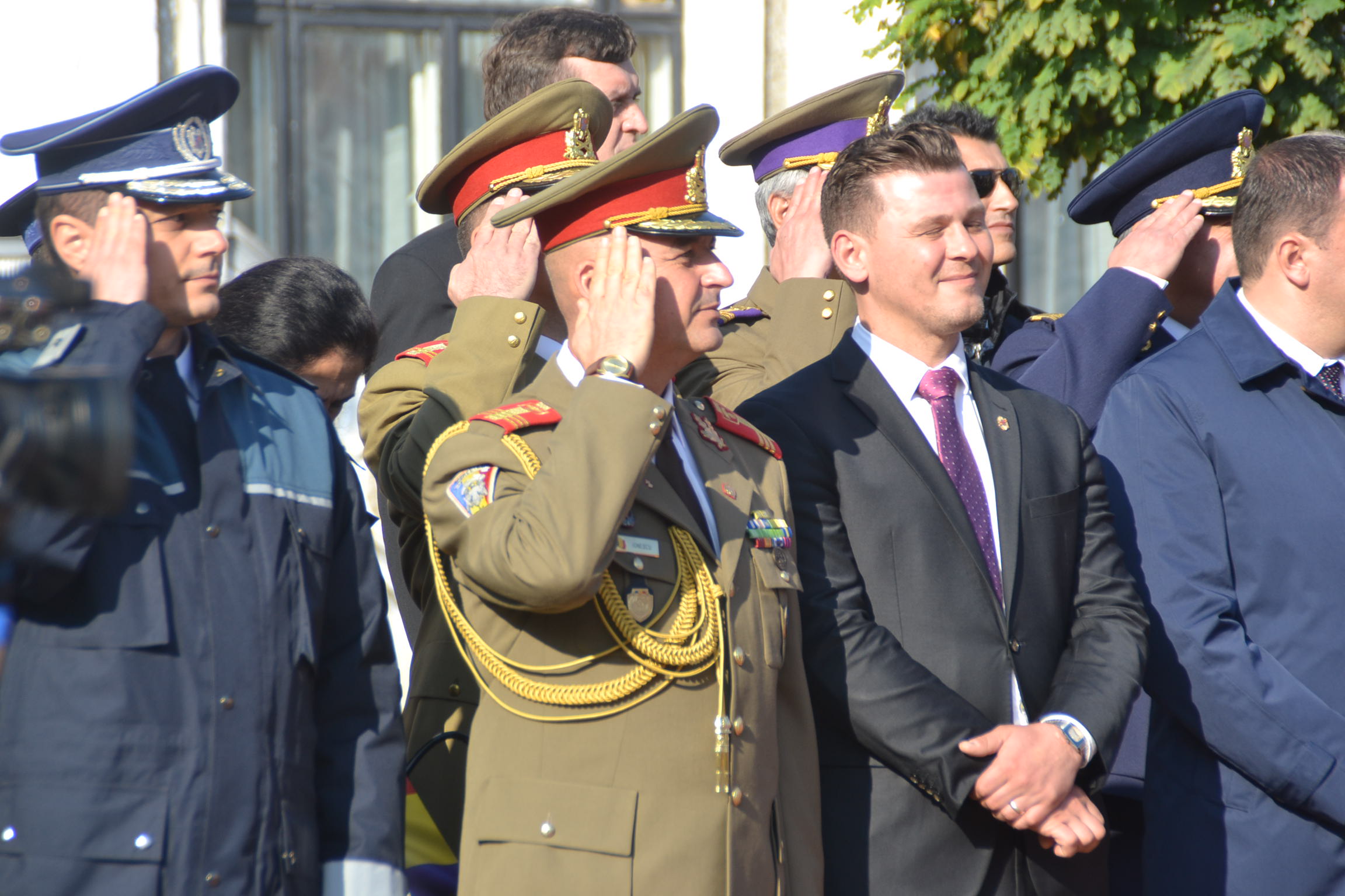 Au fost destul de mulți curioși ce și-au rupt din timpul liber pentru a venit la eveniment împreună cu cei mai mici cetățeni, cei de o șchioapă. De asemenea au venit clase cu dascălii lor de la școlile din apropiere. Un detașament de onoare format din diverse componente de la Brigada a 18-a de Cercetare și Supraveghere „Decebal” a prezentat onorul comandanților de unități dar și autorităților civile și administrative ale orașului și județului. Totul, în sunetele fanfarei militare ce a intonat imnul de stat, dar și marșuri militare.