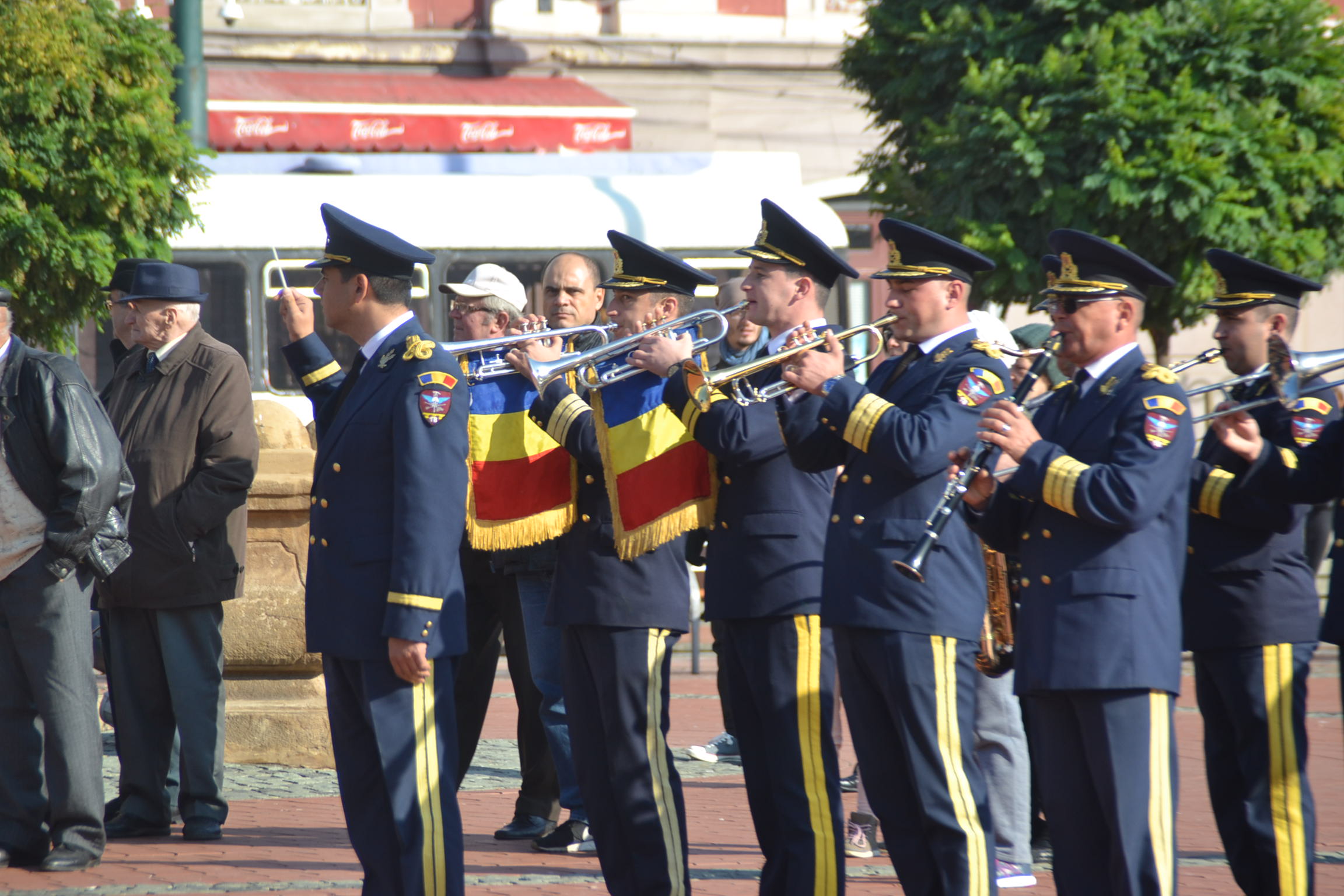 Astăzi, înainte de prânz, vechea piață a Libertății și-a recăpătat pentru o jumătate de oră una din vechile ei meniri. A revenit un loc al paradelor ostașilor cetății. Așa cum era cunoscută pe timpuri, până pe la jumătatea secolului al XIX-lea, Paradeplatz, adică piața paradelor (militare) era locul unde soldații își arătau meșteșugurile, măestria în ale defilărilor și a mânuirii de arme. Și, de ce nu, chiar a fanfarelor de alămuri.