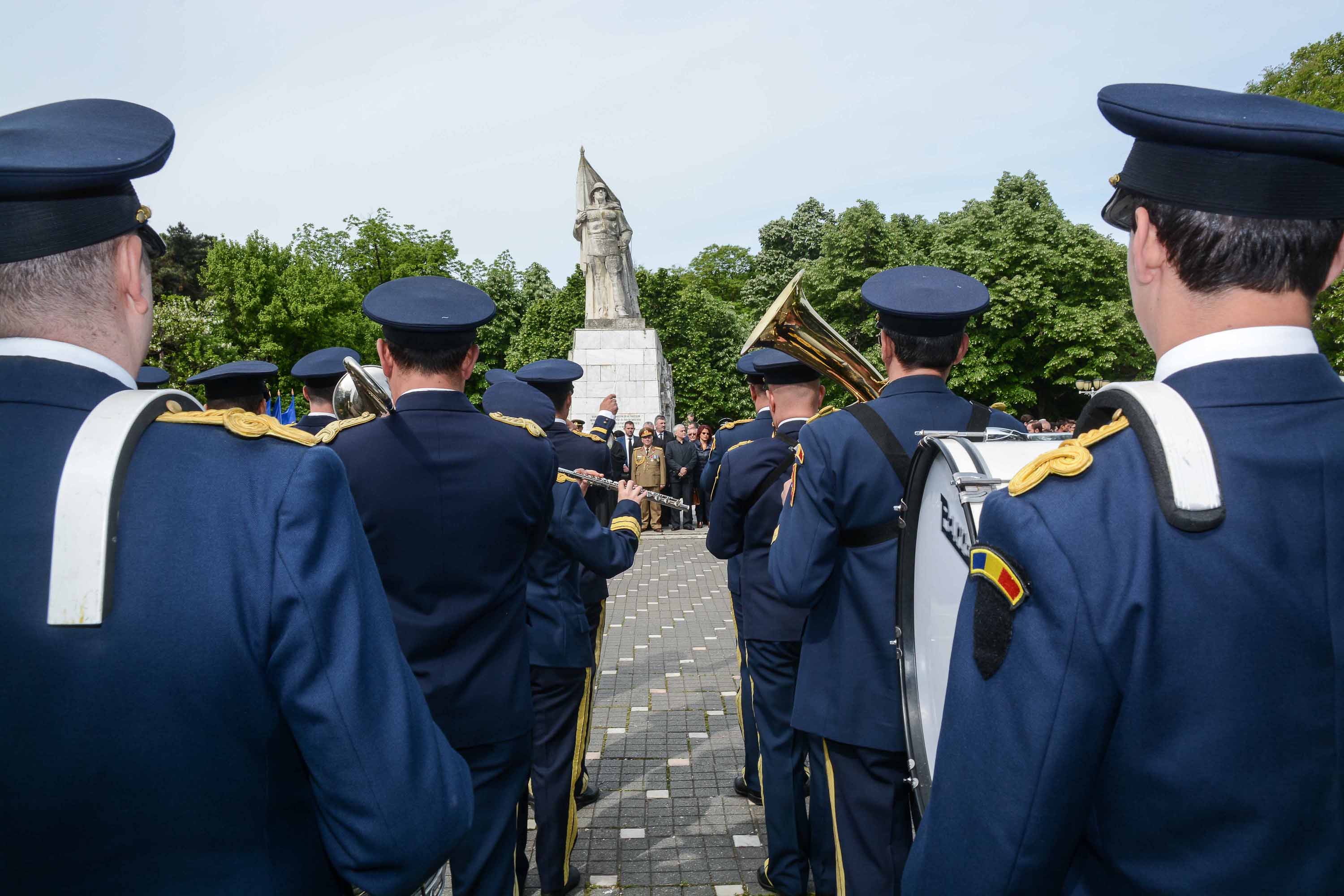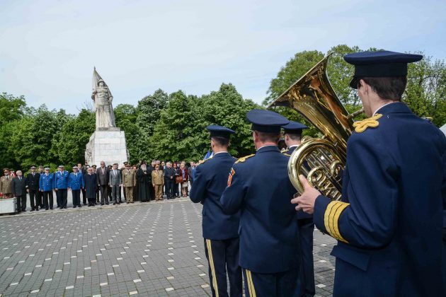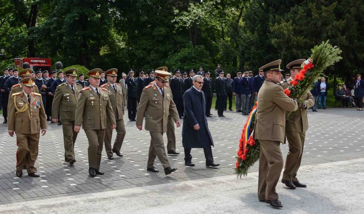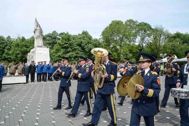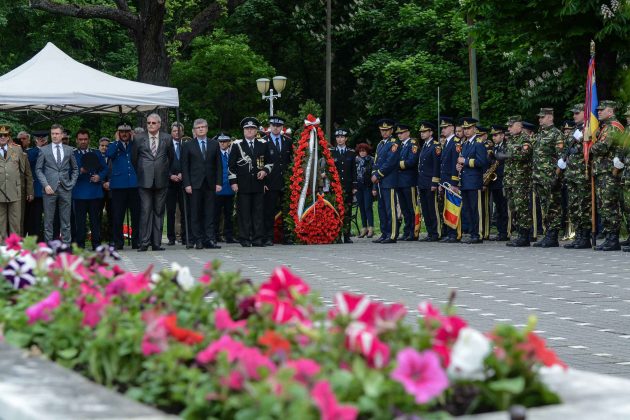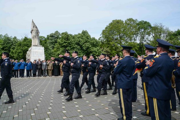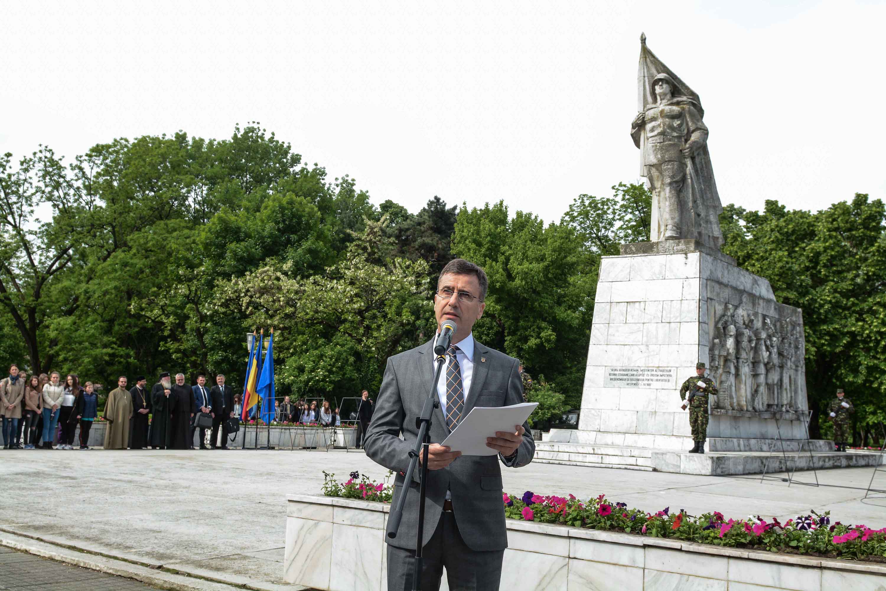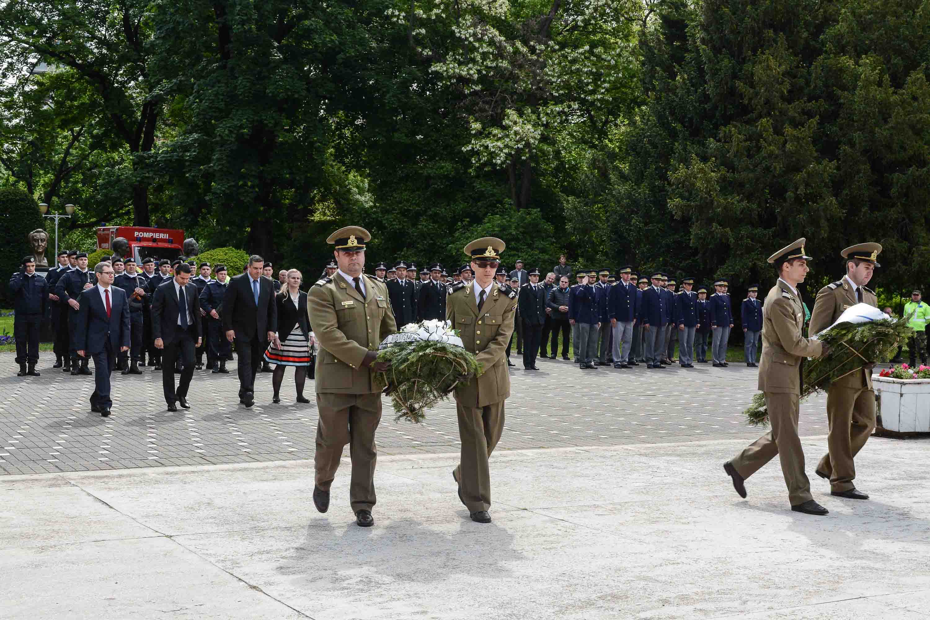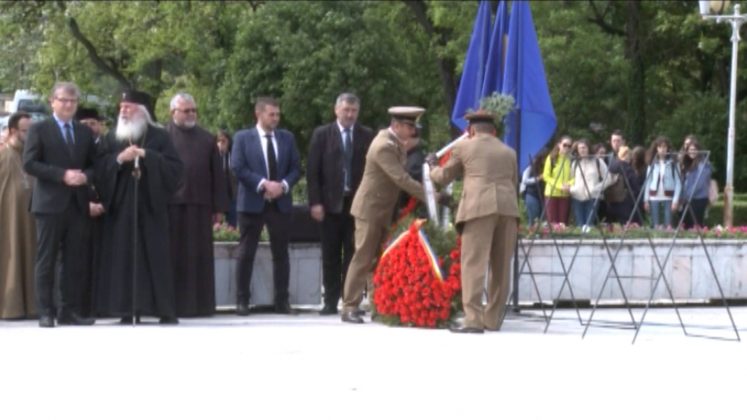 Ziua de 9 Mai a debutat cu un ceremonial militar religios de depunere coroane, buchete și jerbe de flori la Monumentul Ostaşului Român din Parcul Central, organizat cu ocazia Zilei Independenţei de Stat a României, Zilei Victoriei Coaliţiei Naţiunilor Unite şi Zilei Europei.