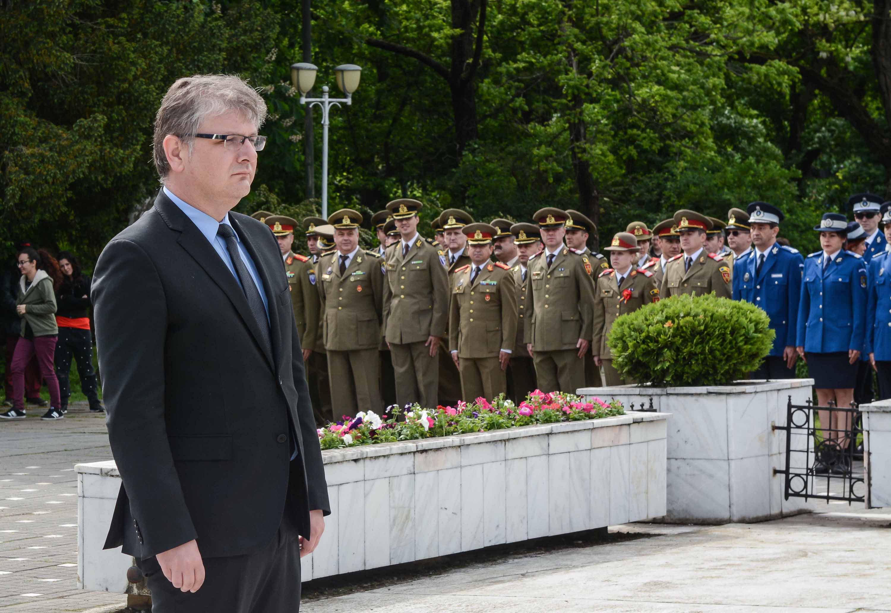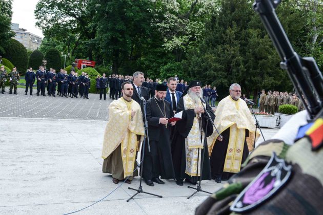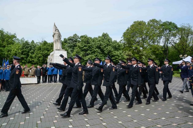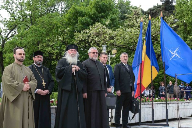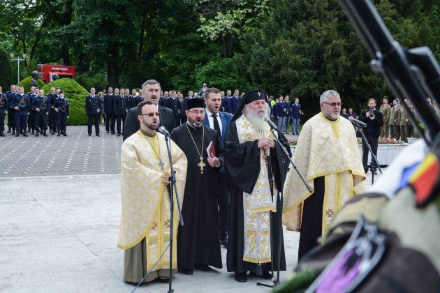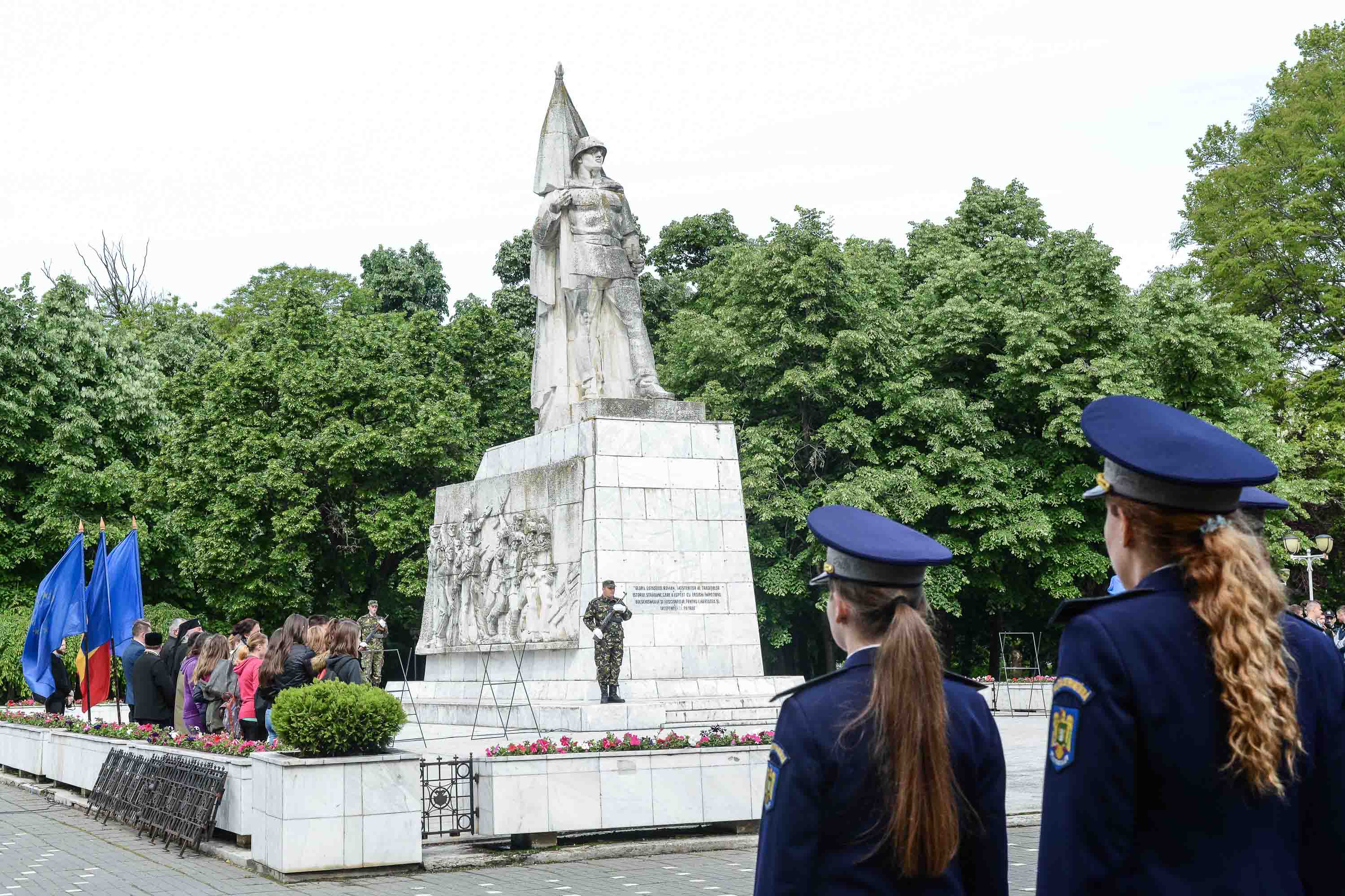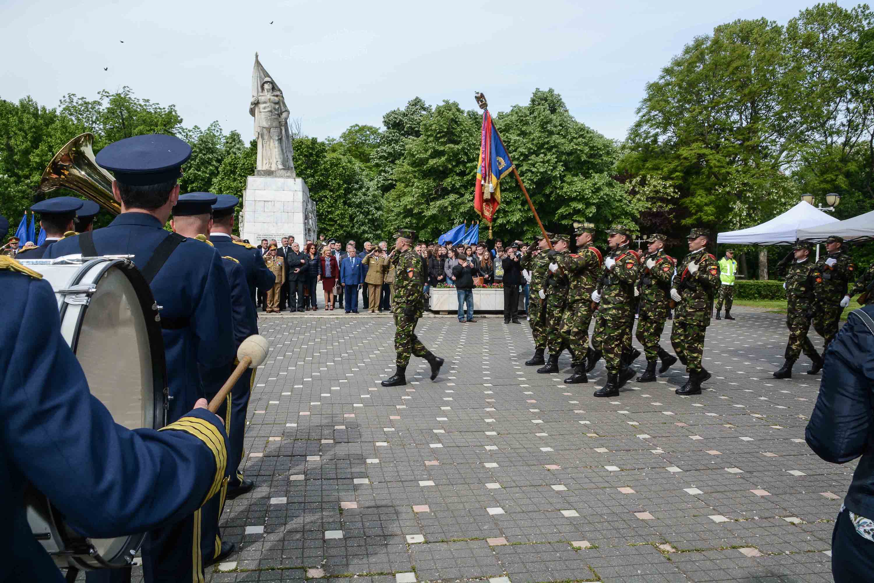 Ziua de 9 Mai a debutat cu un ceremonial militar religios de depunere coroane, buchete și jerbe de flori la Monumentul Ostaşului Român din Parcul Central, organizat cu ocazia Zilei Independenţei de Stat a României, Zilei Victoriei Coaliţiei Naţiunilor Unite şi Zilei Europei.