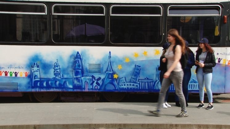 Tramvaiul a fost pus la dispoziție de Regia Autonomă de Transport Timişoara (RATT ) cu sprijinul Primăriei Municipiului Timișoara. Tramvaiul a circula gratuit şi este decorat de studenții Facultății de Arte și Design Timișoara, cu sprijinul Centrului de Informare Europe Direct Timişoara. Acesta circulă pe traseul Piața Libertății – Piața Timișoara 700 – Catedrala Mitropolitană – Piața Maria – Piața Bălcescu –1 Decembrie 1918 – Ștefan cel Mare – Piața Traian – Piața Libertății; vor fi distribuite gratuit călătorilor diverse materiale informative cu tematică europeană.