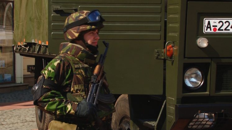 Încă de la primele ore ale dimineţii, Piaţa Libertăţii a fost luată cu asalt de către militarii Brigăzii 18 Infanterie, care au sărbătorit Ziua Forţelor Terestre, patron spiritual al acestei zile fiind Sfântul Mare Mucenic Gheorghe – Purtătorul de Biruinţă.
