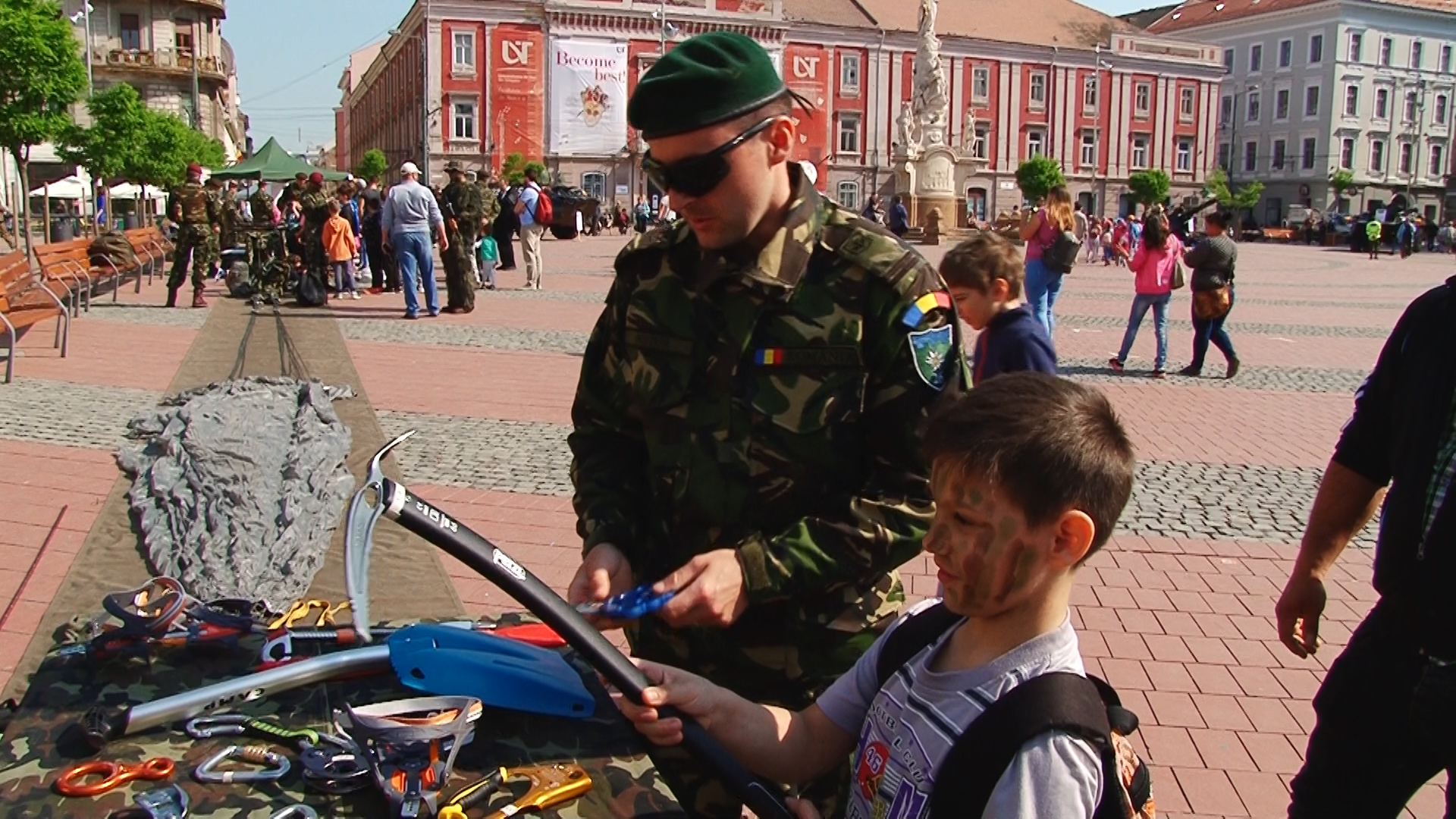 În piaţa din faţa Garnizoanei Timişoara, au putut fi admirate machete de tancuri, blindate, tunuri, arme şi machete ale unor adăposturi. Tinerii au fost îndemnaţi să urmeze o carieră militară, o meserie ce le dă stabilitate, onoare, cinste şi demnitate, ceea ce le conferă un statut social special şi un loc de muncă onorant.