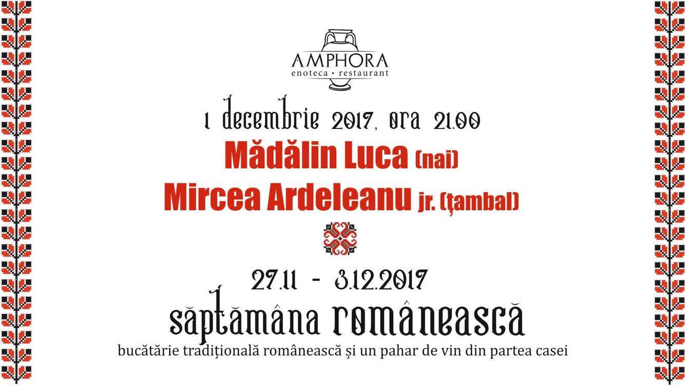 Vineri, pe 1 Decembrie, de Ziua României, timișorenii sunt invitați la o seară cu muzică tradițională românească unde folclorul autentic din diferite zone ale țării va fi vedeta. Duo-ul de excepție format din naistul Mădălin Luca și Mircea Ardeleanu jr. (țambal) va concerta începând cu ora 21.00 în Bastion Theresia, la Restaurantul Amphora.