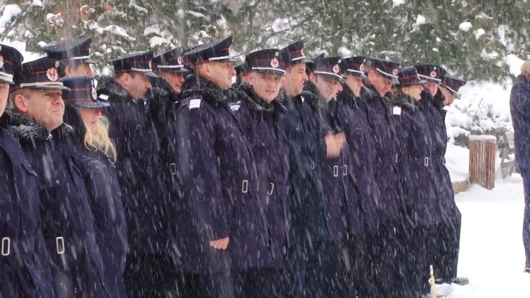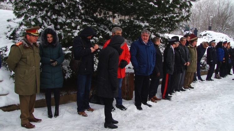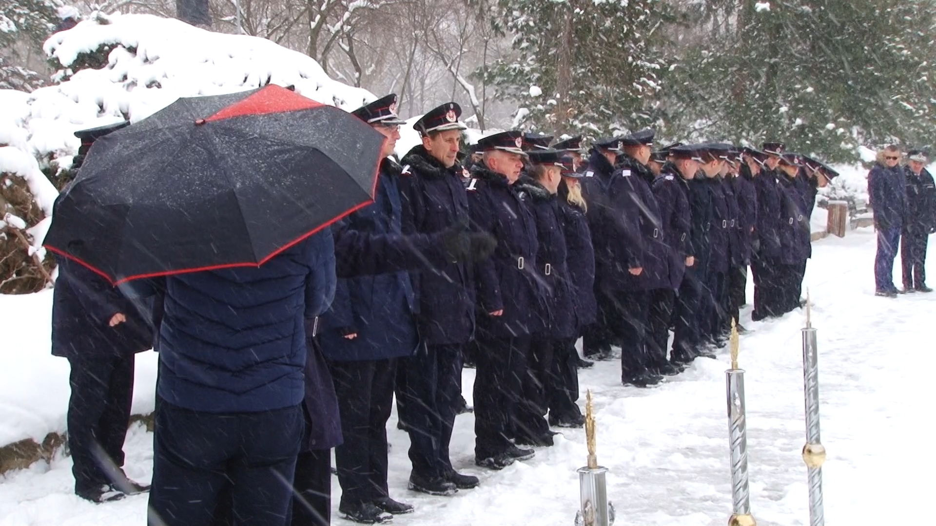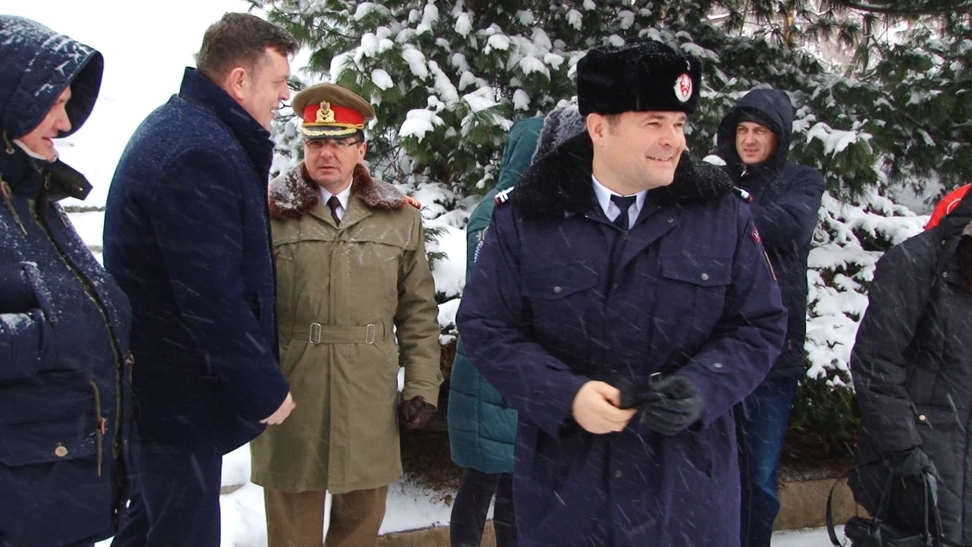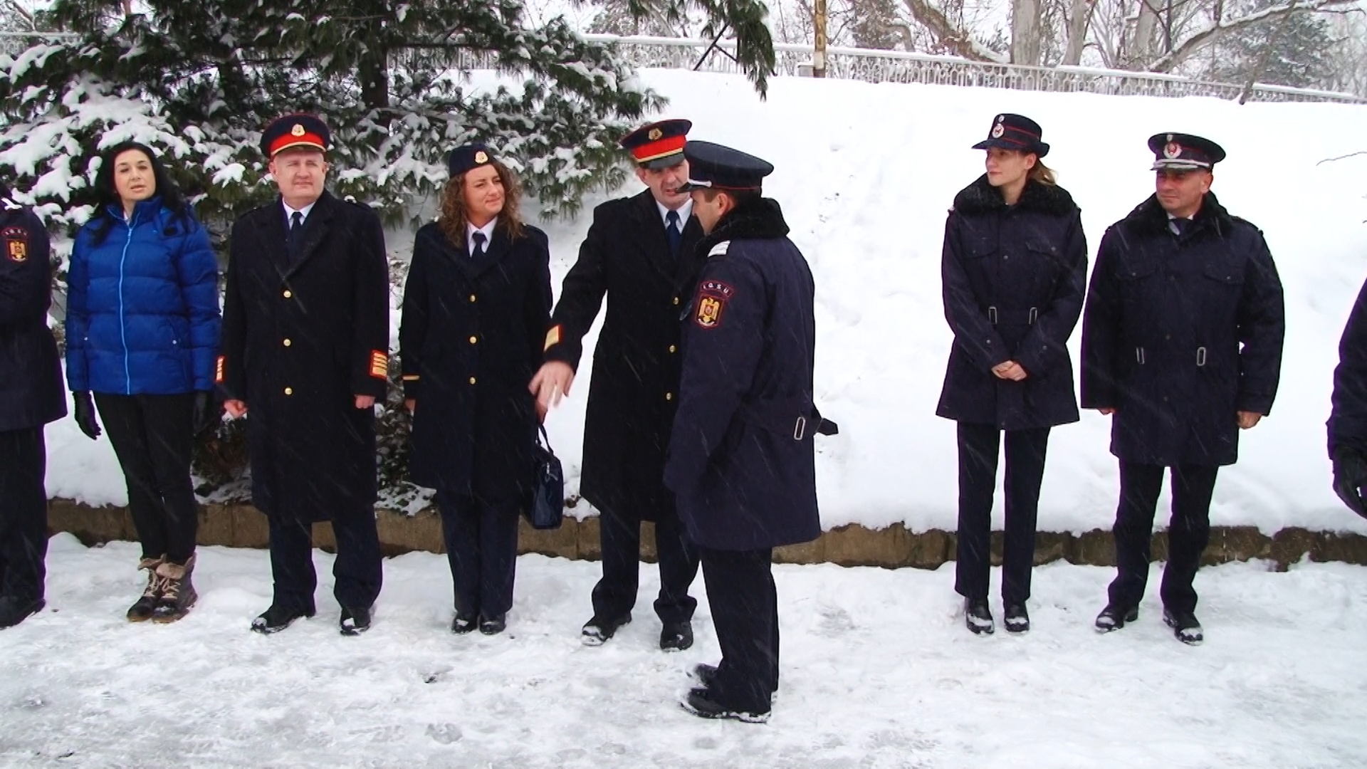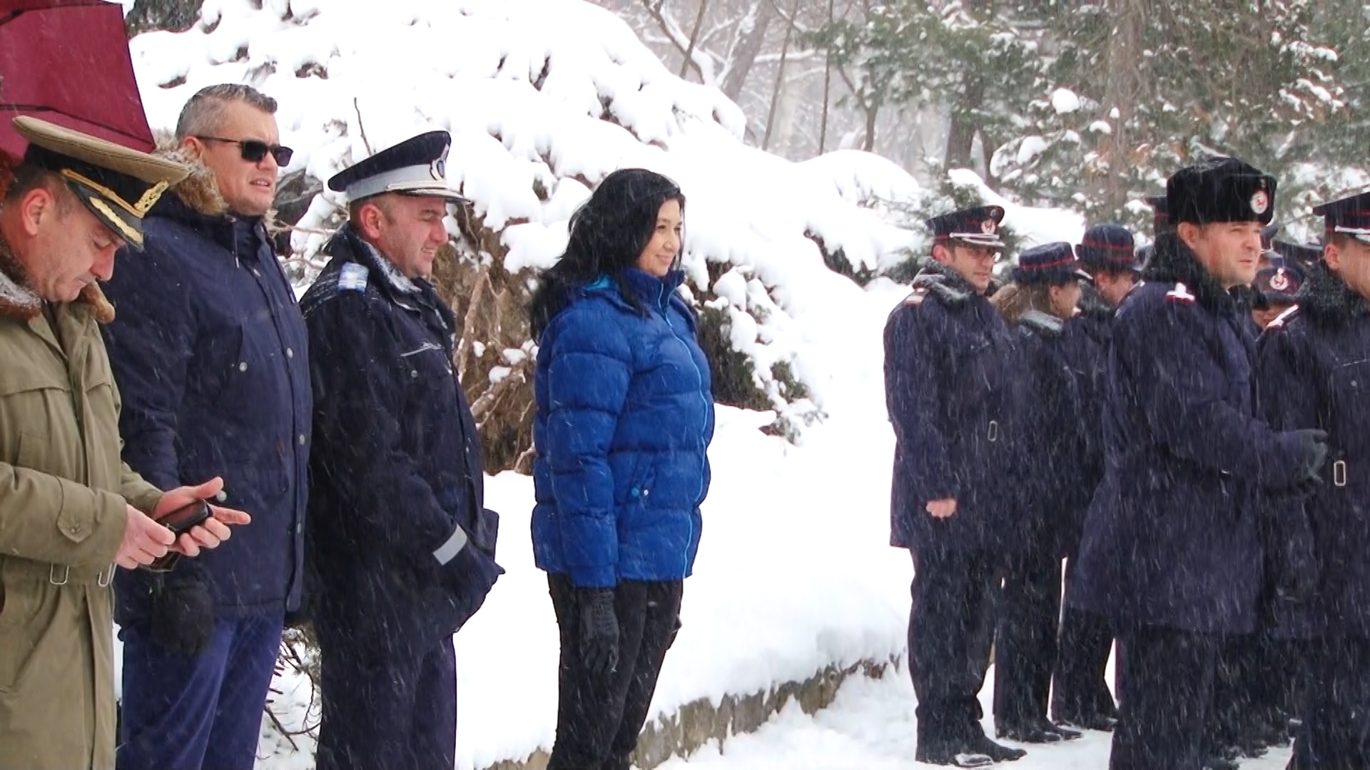 Cei prezenţi au stat cuminţi, unii dintre ei chiar şi în formaţie, şi în poziţie de drepţi, deși ninsoarea nu a contenit să cadă.
