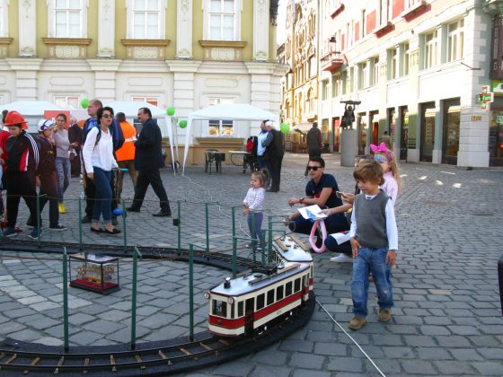 Dar parcă cel mai atractiv stand a fost al celor de la societatea de transport în comun unde o machetă de tramvai electric dintr-o epocă mai veche pornea la drum cu scârțâit de roți și oprea la semafor. Sute de copii au admirat în transă mersul tramvaiului. Poate că unii, la vârsta lor, nici nu au mai văzut așa ceva.