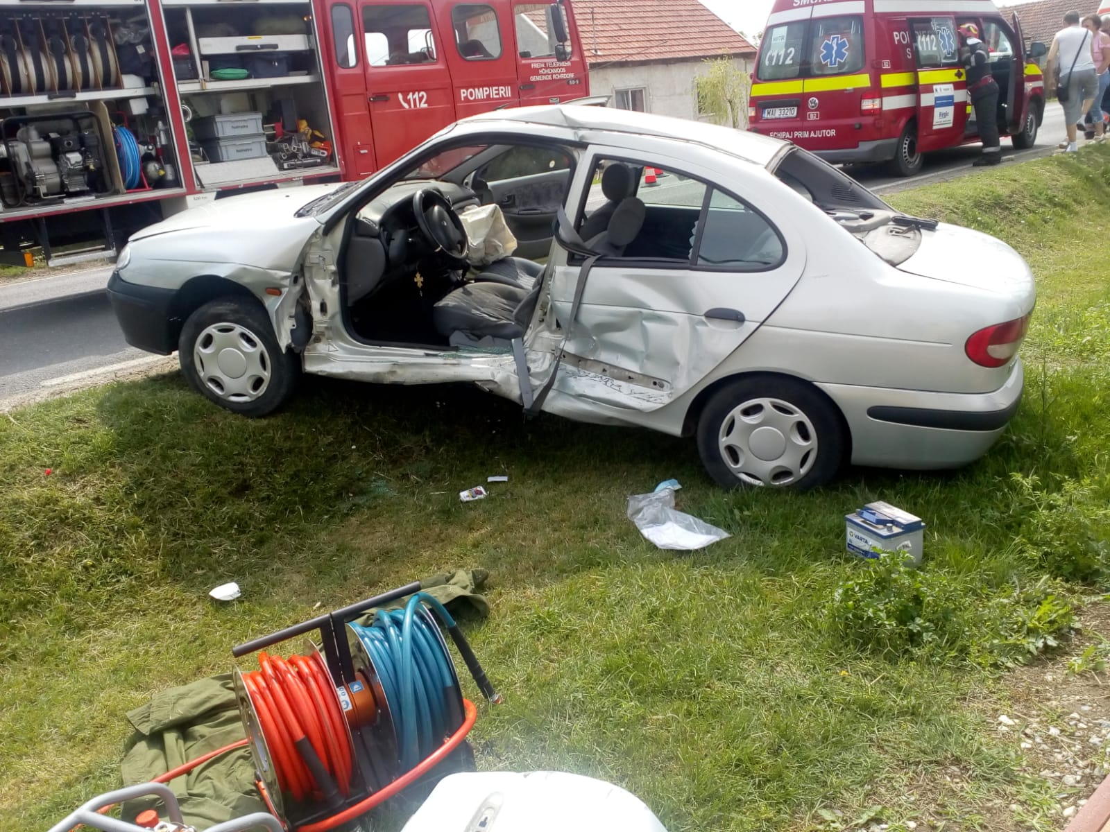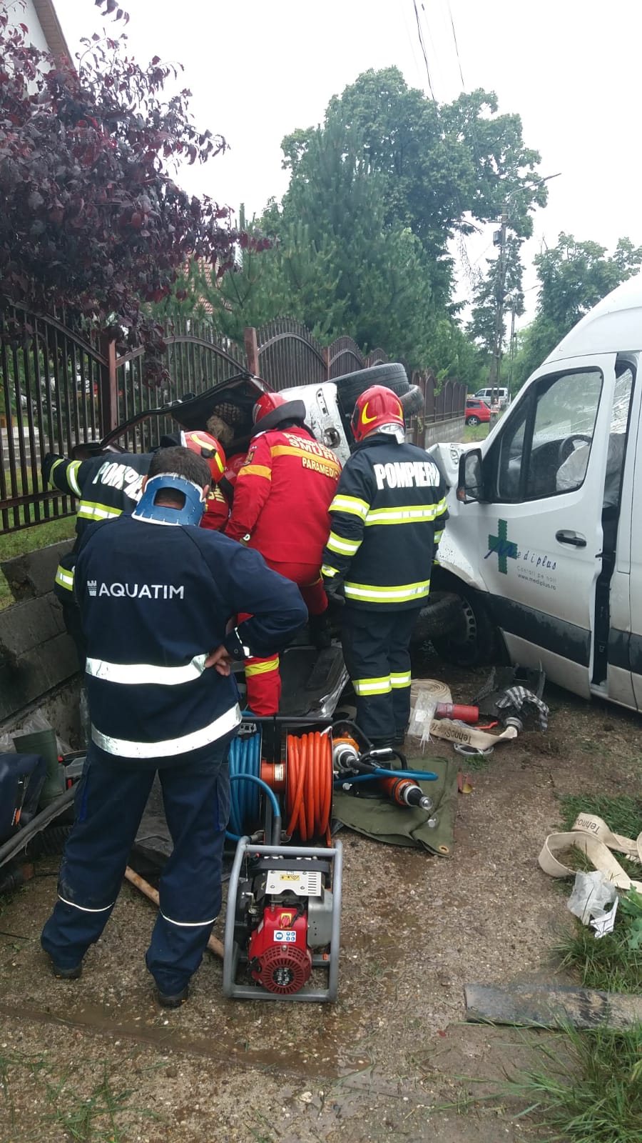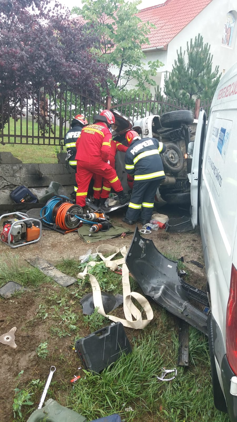 Acesta rămăsese încarcerat, dar a fost scos conștient de către pompieri, din interiorul mașinii răsturnate în afara carosabilului. „Victima a fost extrasă și predată conștientă echipajului SMURD pentru îngrijiri medicale. De asemenea, o persoană care se afla în microbuz a fost preluată de echipajul SAJ, conștientă și cooperantă. Momentan, primește îngrijiri medicale la fața locului. Cea de a treia persoană implicată în accident, nu necesită îngrijiri medicale”, informează ISU Banat.