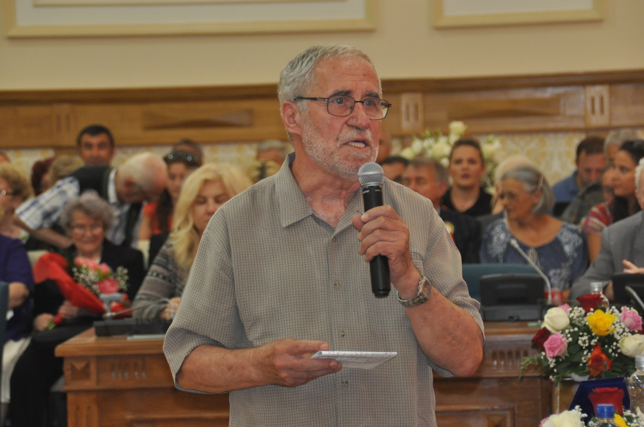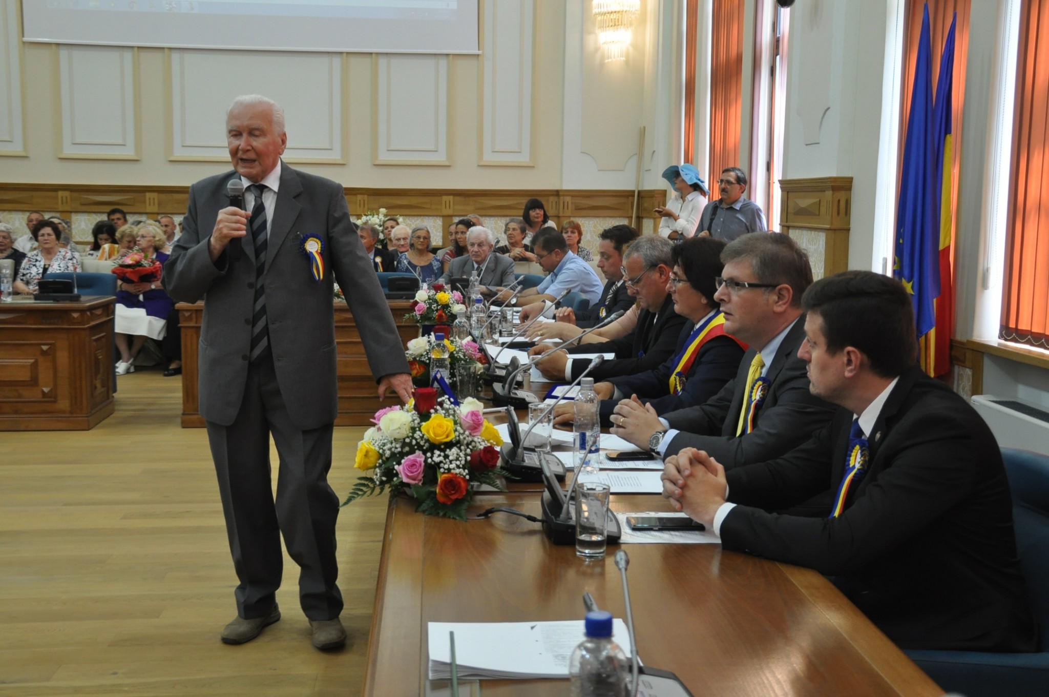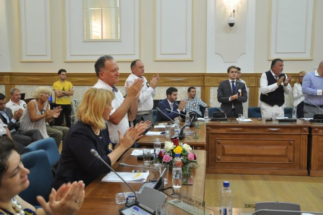 Sala de Consiliu a Primăriei Muncipiului Timișoara a găzduit la ora 13.00 ședința festivă, unde a a avut loc Decenarea Titlului de Cetățean de Onoare al Municipiului Timișoara.