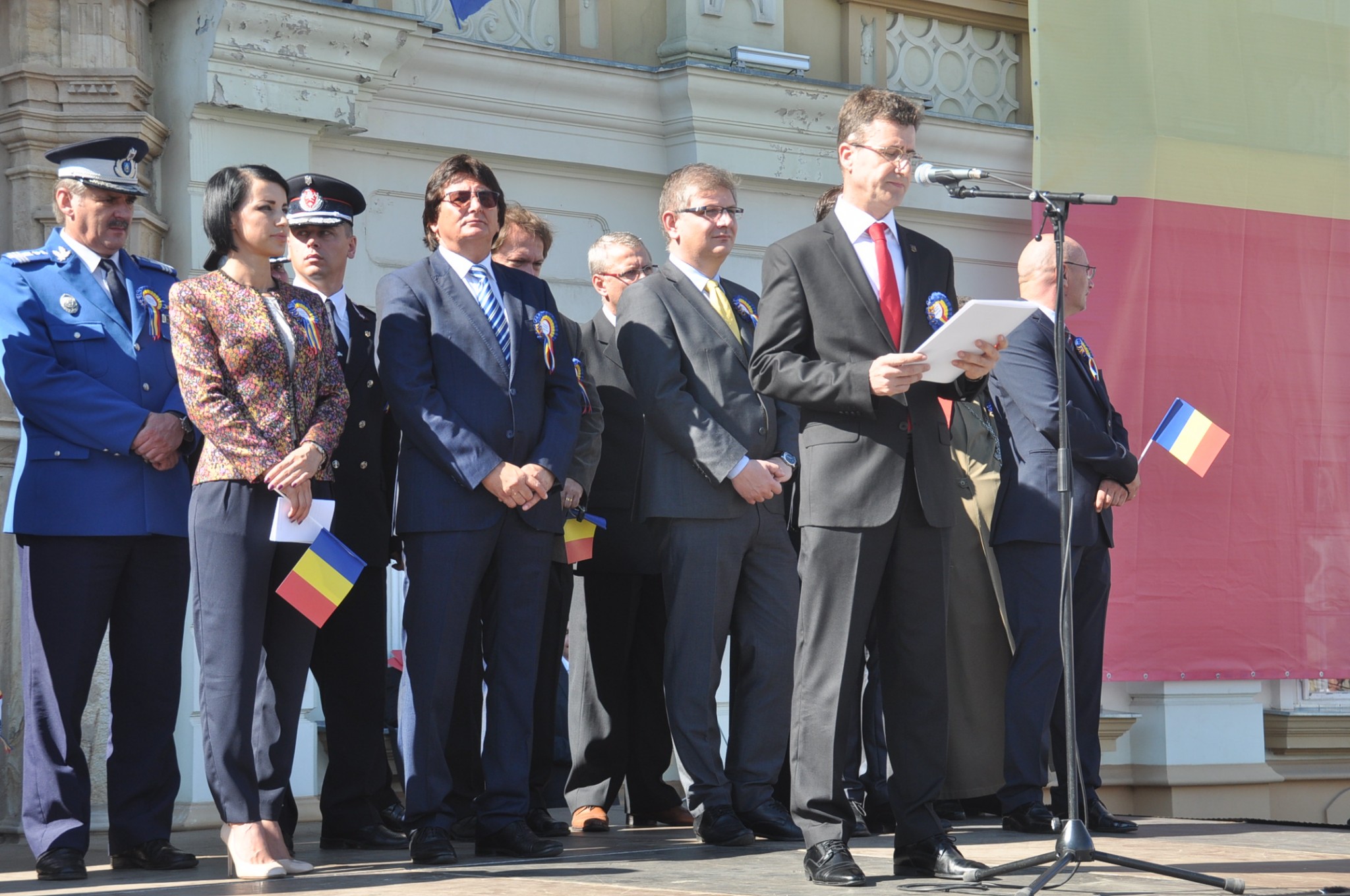 Mult așteptata sărbătoare istorică, ce marchează momente importante ale orașului Timișoara, a fost condusă de către primarul Nicolae Robu. Ceremonia din Piața Unirii a fost deschisă chiar de acesta: ”Sărbătorim astăzi Ziua Timișoarei, în urma unei hotărâri a consiliului local, care a introdus această zi. Omagiem prin această zi intrarea armatelor române în Timișoara, în august 1919 și prin aceasta consfințirea instalării administrației românești în regiunea de vest. Eu sunt mulțumit că orașul Timișoara s-a dezvoltat frumos în ultimii ani. Tmișoara se poate mândri cu calitățile de cel mai dinamic oraș. Este orașul cu cel mai mare export după Capitală, orașul cu cele mai multe investiții, orașul cu cea mai ridicată calitate a vieții. Timișorenii sunt oameni harnci și muncitori. Orașul va fi în continuare unul de primă importanță în România și în această parte a Europei. Cu ocazia zilei Timișoarei vreau să le urez și îmi face o deosebită plăcere să fac acest lucru, tuturor timișorenilor, multă sănătate, noroc, prosperitate și cât mai multe bucurii”.